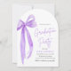 Comemore sua graduação em estilo e elegância com este convite moderno em forma de arco, com um arco púrpura chico, tipografia elegante e um design sofisticado. Perfeito para uma comemoração da moda e da graduação em classe, este modelo editável é fácil de personalizar para impressão ou compartilhamento digital. Uma forma eterno e na moda de convidar convidados para este marco especial! 💜 🥂