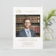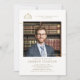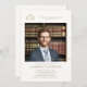 Celebre seu formando na Faculdade de Direito - ou você mesmo - com este elegante e clássico convite de fotos da graduação na Faculdade de Direito com um tema branco e ouro. Substitua as escalas de justiça pelo logotipo da sua escola ou deixe-a como está. A design de tipografia contemporânea é elevada pelas matizes douradas e pela disposição minimalista. Duas linhas de ouro (efeito digital!) sugerem um quadro moderno e minimalista para a foto. Personalize cada linha de texto. Marinho e ouro falso.