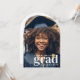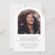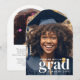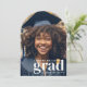 Anuncie a formatura do seu aluno com este convite de formatura elegante em forma de arco com 2 fotos. A frente do convite tem uma foto que cobre toda a área do convite junto com o texto moderno que escreve "grad", o nome do formando e o ano da turma. A parte de trás do convite tem um modelo de 2ª foto com um modelo de texto para personalizar com o texto desejado.
