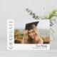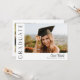 Este convite de formatura com foto elegante e moderno apresenta uma foto horizontal e título com nome e texto personalizáveis em escrita na frente. O verso tem um convite com detalhes da festa. Uma ótima maneira de mostrar seu graduado. Clique no botão de editar para personalizar este design.
