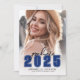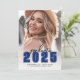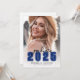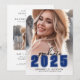 Anúncio de Formatura e Convite de Festa Minimalista Clássico. A frente apresenta uma foto de página inteira com um gradiente branco na parte inferior que se mistura perfeitamente à imagem. Sobre o gradiente, "2026" aparece em uma fonte clássica e negrita, estilo escolar, em azul. Acima do ano está "Graduado" em uma fonte cursiva, que pode ser alterada para "Turma de" se preferido. Abaixo do ano, o nome do graduado e o nome da escola são apresentados de forma elegante. O design atual usa tons pretos e azuis para uma aparência atemporal e sofisticada, mas todas as cores podem ser personalizadas para combinar com as cores da escola ou preferências pessoais.