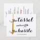 Convites de formatura de faculdade com quadro-negro elegante e escrita à mão. Com borla dourada. Convites / anúncios de formatura da turma de 2016.