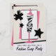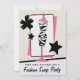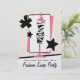 Um partido da troca da roupa de forma convida a caracterização de uma ilustração de um impressão da zebra e de um formulário cor-de-rosa do vestido cercados por estrelas pretas decorativas e por um fundo do rosa, do preto, e o branco. Personalize o texto na parte dianteira e na parte traseira.