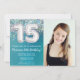 15 de Foto: Aniversário de Convite Teal e 15 de Lata de Lata e Lata de Prata por um convite de aniversário de 15 anos com modernos roteiros escrevendo e balões de folha divertida.