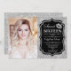 Foto Doce 16 Aniversário - Negro Silver Beijo. Doce dezesseis convites de aniversário com sua foto. Possui fonte de script, lábios beijam e confetti. Design clássico com falso brilho de prata. Perfeito para uma elegante festa de 16 dias de glam.
