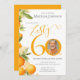 Foto 60ª Convite de aniversário Zesty Orange. Ignore a sua celebração com o tema da Festa de aniversário do Milestone Adulto Zestiço Laranja! Queimando com energia e vibração, este design animado coloca a palco para um encontro cheio de diversão. Incorpore sua foto personalizada favorita para personalizar a experiência, adicionando um toque exclusivo à celebração do marco. Da matiz espiritual da laranja aos sotaques lúcidos, cada detalhe exude alegria e entusiasmo, este tema promete infundir a sua cesta de aniversário com um humilde humor que fará todos sorrirem de orelha a orelha. Prepare-se para abraçar o mais alto e criar memórias inesquecíveis com entes queridos!