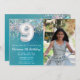 Convite Foto 9º aniversário do Teal Silver Glitter