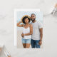 Este convite de casamento apresenta uma fotografia calorosa e convidativa de dois indivíduos que estão próximos um do outro em uma praia, capturando a essência da camaradagem e da alegria. O design exibe uma paleta de cores suaves com areia bege clara, ondas do mar azuis e tons terrosos de suas roupas casuais, criando uma atmosfera relaxada e de verão. O estilo fotográfico enfatiza a autenticidade, destacando emoções genuínas em um cenário sereno à beira-mar. Perfeito para casais que buscam um tema descontraído e alegre, este convite evoca calor e positividade, ideal para celebrar o amor à beira do oceano.