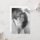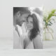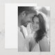 Este convite de casamento apresenta uma fotografia em preto e branco que captura um momento íntimo entre dois indivíduos, enfatizando seus sorrisos genuínos e posturas relaxadas. O design foca na simplicidade e ressonância emocional, com iluminação suave que destaca as expressões dos sujeitos e cria um clima quente e sereno. A paleta de cores em tons de cinza realça a elegância atemporal do layout, tornando-o perfeito para casais que buscam uma estética clássica e, ainda assim, emocionante para o seu dia especial.