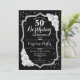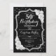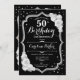 Convite Foto branca Elegante Black Silver 50º aniversário