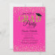 Rosa quente com brilho dourado e texto preto brilho e convite de festa de formatura vírgula personalizado com sua foto no verso.