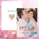 Casamento de Foto Salve a data - Noiva e Cartão de Convite para Noite, projetado com sua foto de casal favorita, e Detalhes do Anúncio. O lado frontal inclui sua imagem junto com o texto: Salvar a data, os primeiros nomes da noiva e do noivo, a data de casamento e o convite formal para seguir. O texto inverso inclui: ela disse sim! num fundo branco com delicado sotaque cardíaco. Para personalizar, basta inserir sua imagem em nosso modelo fácil. Clique em: Preencher, para cobrir. Em seguida, insira os detalhes do texto, substituindo o exemplo. Esta opção Salvar o Anúncio de data está disponível no download impressão e digital.