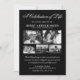 Celebre a vida significativa de seus entes queridos com nossos elegantes convites de funeral personalizados. Com um fundo preto sofisticado e um modelo de celebração de vida moderno, dá um toque caloroso ao compartilhar a memória deles. O design integra graciosamente cinco fotos selecionadas do seu ente querido, criando uma homenagem delicada, porém poderosa, à sua jornada notável. Comemore os momentos inesquecíveis da vida conosco.