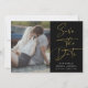 Este elegantemente casual salva a data com uma foto (orientação para retratos) e uma caligrafia moderna que diz "Salvar a data" em letras douradas sobre fundo preto. Personalize com seus nomes, data de casamento e local de casamento abaixo da tipografia de script de ouro. A parte traseira personalizável do cartão pode acomodar informações e fotos adicionais.