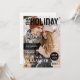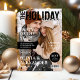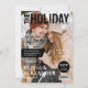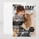 Convites de festa de Natal inspirados em revista com uma foto de capa completa dos anfitriões junto com a manchete "a edição de Natal", o convite também inclui um modelo de texto elegante que é fácil de personalizar com detalhes da festa, como data, hora e local.