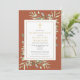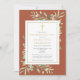 Um convite de funeral personalizado e elegante para celebração cristã da vida com lembrança, apresentando folhagem botânica em aquarela sobre um fundo terracota. Criado por Thisisnotme©