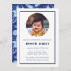 Convite de foto da cerimônia do primeiro arroz Annaprashan Blue Floral. Este convite bengali mukhe bhaat apresenta um design floral azul de paisley. Perfeito para qualquer bebê hindu. Personalize este design personalizado com seus próprios detalhes e foto.