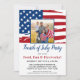 EUA American Flag 4 de julho Convites de festas. Convide amigos e família para a sua festa patriótica de quarta de julho com estes convites modernos da bandeira americana. Personalize este convite da bandeira americana com o seu evento, nome, fotografia e detalhes da sua festa. Veja nossa coleção para combinar presentes, favoritos para festas e suprimentos patrióticos no dia 4 de julho. COPYRIGHT © 2021 Judy Burrows, Black Dog Art - Todos Os Direitos Reservados. Convite Fotográfico da Família Bandeira Americana do Partido Americano em 4 de julho