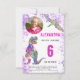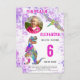 Convite de aniversário de 6 de cor d'água rosa e roxo T Rex dino para a garota que ama dinossauros. Esses coloridos T Rex e pterodátilo voador convidam fãs Dino para uma sexta festa de aniversário divertida. Tyrannosaurus rex multicolor e pterodactyl em verde-roxo roxo e verde-rosa vibrante Personalize este design com uma foto, o número do aniversário e os detalhes da festa e você está preparado para um dinossauro lotado e divertido, chamado de aniversário dino. Todas as espécies de dinossauros são bem-vindas. Ilustração original de arte por Catherine Sweetman