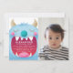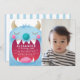 Convite de festas de aniversário bonito para a festa do monstro do seu filho! Ilustração de um monstro azul com dois chifres abrindo a boca. Os textos são dentro com o nome, a idade e a informação da festa do aniversariante. Você pode adicionar sua própria foto do seu filho ao lado da ilustração do monstro. Os textos são facilmente editáveis online.