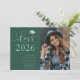 Modelo de convite para festas de formatura elegante e simples para formandos de segundo grau ou faculdade! O texto da tipografia contra o fundo verde diz "Classe de 2025" na letra moderna do roteiro. Você também pode adicionar uma imagem. Personalize este produto adicionando o nome do formando, a escola e as informações da parte.