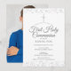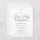 Convite da primeira comunhão com poeira de estrelas prateada apresentando delicada poeira de estrelas prateada, você pode personalizar com suas informações especiais em texto prateado elegante e adicionar uma foto especial no verso. Criado por Thisisnotme©