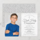 Convite da primeira comunhão com poeira de estrelas prateada apresentando delicada poeira de estrelas prateada, você pode personalizar com sua foto especial e informações do evento em texto prateado elegante. Criado por Thisisnotme©