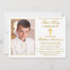 O Primeiro Convite à Santa Comunhão do Elegante Moderno com Cruz e Foto. Dourado quadro.