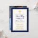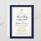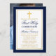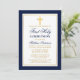 Marinho Elegante Azul e Dourado Primeiro Convite à Comunidade com Cruz. Dourado quadro. Dourada Cruz. Foto de volta.