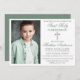 Moderno Elegante Verde e Silver Primeiro Convite à Comunhão com Cruz e Foto.