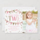 Na moda e segundo convite de aniversário tocável com banners de bunting padronizados com brilho e confete cor-de-rosa e ouro. Personalize com detalhes do evento e sua foto. Vem com um padrão correspondente no verso. // PARTE DE UMA RECOLHA // O MESMO DESIGN ESTÁ DISPONÍVEL EM Idade ADICIONAL ///
