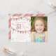 Na moda e convite de aniversário divertido com banners de bunting padronizados com brilho e confete cor-de-rosa e ouro. Personalize com detalhes do evento e sua foto. Vem com um padrão correspondente no verso. // PARTE DE UMA RECOLHA // O MESMO DESIGN ESTÁ DISPONÍVEL EM Idade ADICIONAL ///