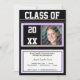 Faça o upload de quatro fotos suas para a frente deste convite contemporâneo preto e roxo e personalize o texto com o ano do seu graduado. O texto adicional diz: "Turma de". Se as fotografias carregadas não forem do seu agrado, certifique-se de usar o link: "Editar isto na nossa ferramenta de design agora"! Preencha o nome do seu graduado e as informações da festa. Compre em grande quantidade e economize.
