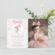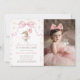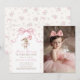 Convite de foto de 1º aniversário do coelhinho com laço de coquete floral rosa