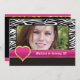 Impressão em zebra branca preta com banda rosa quente e convite para fotos de 20 de aniversário de tendências cardíacas. Uma design moderna, contemporânea, feminina com sua foto em um padrão de impressão zebra, uma banda fuchsia e magenta. Um design elegante e elegante de um tema clássico com fonte vintage, perfeito para um marco 20, 30, 40, 50, 60, 70, 80, 90 e por que não o 100 anos. Altere o número para o ajustado das suas necessidades.