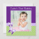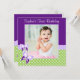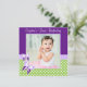 Celebre o primeiro aniversário da sua menina com este convite para fotos de primeiro aniversario de borboletas fofo. Apresentando borboletas em um fundo de bolinhas. Mostrado em roxo, verde e branco. Personalize facilmente as informações da sua festa e a foto da criança.