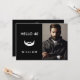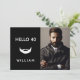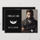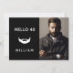 Convite de festas preto-e-branco para homens, com a imagem de uma barba na frente. Com o texto: aniversário de 40 anos! na frente. Modelo para sua foto. A Adicione os detalhes do evento no verso. Letras brancas, fundo preto.