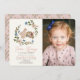 Este brilhante convite de fotos de aniversário de "um coelhinho está virando uma", de uma garota, apresenta um coelho cercado por uma coroa floral. O verso apresenta um fundo de rosa claro com padrões florais. Personalize-o para as suas necessidades. Você pode encontrar produtos correspondentes na minha loja.