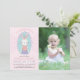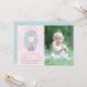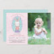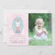 Este convite de aniversário bonitinho apresenta um coelho ilustrado vestido para uma festa e enquadrado por floral e confetti. O convite para o aniversário cor-de-rosa e roxo inclui também uma tipografia divertida e uma fotografia da aniversariante ou do rapaz. Personalize o cartão do coelho com a sua foto e os detalhes de aniversário. O cartão pode ser personalizado para qualquer ano de aniversário. A parte de trás do convite é decorada com bolinhas verdes e brancas.