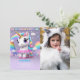 Convite Foto de aniversário de unicórnio Over The Rainbow