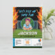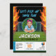 Este design apresenta o tema de aniversário do Futebol "Vamos Chuta a Diversão" com um campo de futebol e uma área de gol de bola de futebol e uma ilustração única da bola de futebol num fundo preto. Perfeito para atletas esportivos e aniversário de entusiastas do futebol. Este cartão de convite pode ser facilmente personalizado com os detalhes do evento. Para mais produtos que combinem, sinta-se livre para me enviar mensagens no Zazzle.