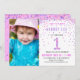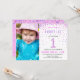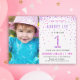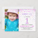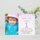 Celebre o aniversário de seu filho de 1 ano com um confete rosa e roxo colorido nestes convites para primeiros aniversarios! Apresentando os detalhes da festa da sua filha e um "1" em confetti. Adicione facilmente a foto do seu filho a esta design :) A parte traseira tem um design de confetti com uma cor de lavanda suave. Este design adorável é super fofo e giro - e perfeito para a garota que ama rosa e roxo!
