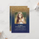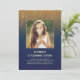 Convite Foto de aniversário Dourada do Marinho de Glitter