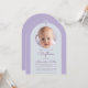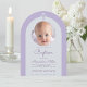 Convite Foto de Arco de Batismo Lavanda Cruz Roxa & Script