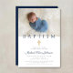 Convite Fotográfico personalizado de Cristo Religioso Cruzado Azul-Marinho para Batismo.