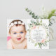Convite Foto de batismo elegante, cor-de-rosa, folhagem Eu