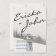 Um convite de casamento moderno, mas casual, em um caligrafia negra e serifa negra.