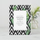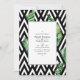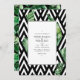 Faça uma declaração ousada com este convite moderno de casamento, com um padrão chic de chic chic chevron preto-e-branco acentuado por folhas tropicais verdes e peludas. Perfeito para casais que amam o estilo contemporâneo com um toque de natureza, esse convite dá um tom sofisticado mas vibrante para casamentos tropicais, de praia ou de destino. A tipografia elegante e o layout limpo adicionam um toque refinado, garantindo uma primeira impressão memorável.