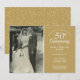 Personalize com a sua foto de casamento favorita e os detalhes da sua celebração especial do aniversário de casamento de ouro de 50 anos em tipografia branca elegante em um fundo dourado. O verso apresenta confete de corações dourados. Concebido por Thisisnotme©
