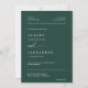 Este elegante convite de casamento minimalista mescla uma fonte serif limpa com uma bela caligrafia escrita para as palavras "e" e "responder", dando-lhe um eterno e sofisticado olhar sobre um fundo verde esmeralda. O design apresenta uma foto personalizada do casal e um código QR que direciona os convidados para o RSVP e acessa os detalhes do evento, fazer-o uma combinação perfeita de estilo e conveniência. Aceda a este convite amigável para todos os componentes, reduzindo a necessidade de RSVP adicional e cartões de detalhes. Basta adicionar seu código QR à parte traseira do convite e compartilhar informações essenciais do casamento digitalmente. Personalize os nomes e o texto em apenas alguns passos fáceis e personalize o convite com sua própria foto para um toque único e significativo. Por favor, note: as belas escrevendo das palavras "e" e "responder", bem como as linhas tanto na frente como no verso e outros elementos gráficos de trabalho de arte, não podem ser editadas, movidas ou eliminadas, São corrigidas. O script para as palavras "e" e "responder", juntamente com as linhas e outros trabalho de arte gráficos, não pode ser editado, movido ou excluído. Estes elementos são fixos. Se você quiser mudar a cor, poderá personalizar facilmente o convite para corresponder ao seu tema de casamento clicando em "Personalizar o convite". Você pode personalizar este convite com seu texto e compartilhá-lo digitalmente através de texto, email ou mídia social. Preferir um toque tradicional? Você também tem a opção de enviar uma versão impressa para seus convidados — ou faça ambos para uma conveniência adicional!